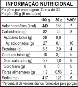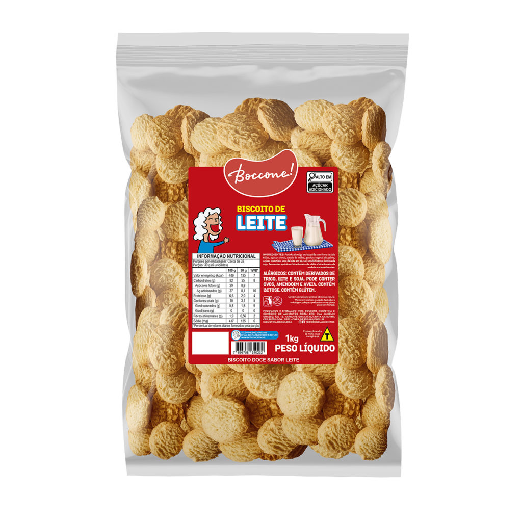 Farinha de trigo enriquecida com ferro e ácido fólico, açúcar cristal, amido de milho, gordura vegetal de palma, açúcar invertido, soro de leite em pó, sal, emulsificante: lecitina de soja, fermentos químicos: bicarbonato de sódio e bicarbonato de amônio e aromatizantes. ALÉRGICOS: CONTÉM DERIVADOS DE TRIGO, LEITE E SOJA. PODE CONTER OVOS, AMENDOIM E AVEIA. CONTÉM LACTOSE. CONTÉM GLÚTEN.