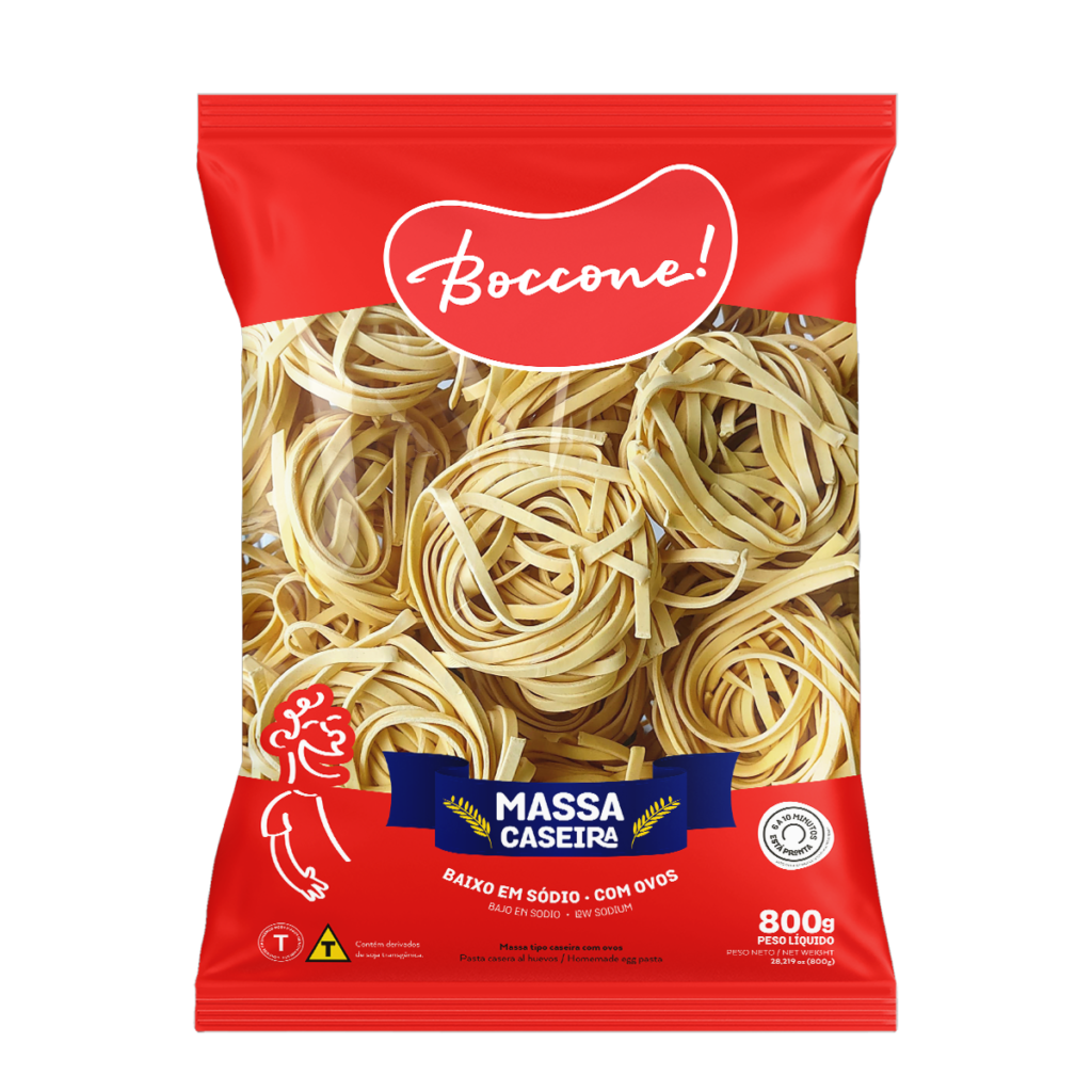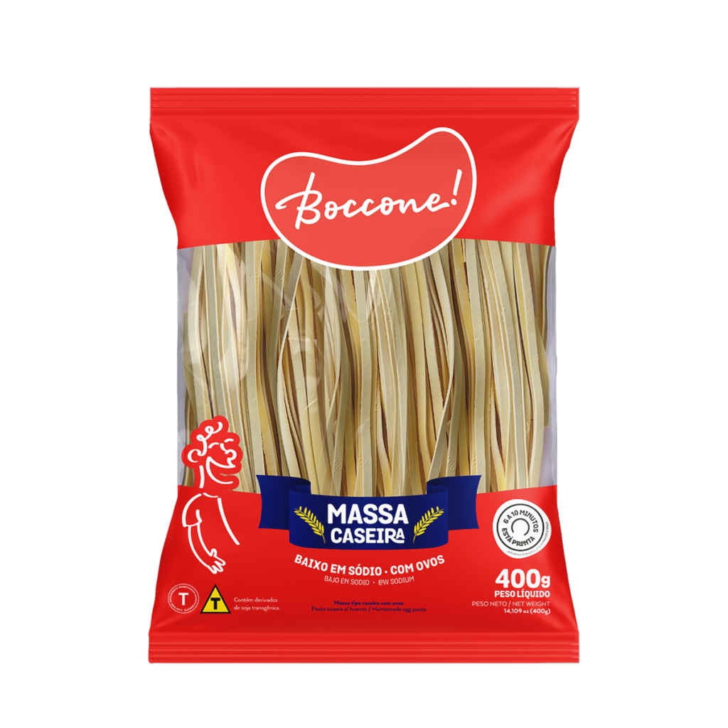 Farinha de trigo enriquecida com ácido fólico e ferro, água, óleo de soja, corante natural de urucum INS 160b (i), cúrcuma INS 100 (i), ovos. ALÉRGICOS: CONTÉM OVOS E DERIVADOS DE TRIGO E SOJA. CONTÉM GLÚTEN.